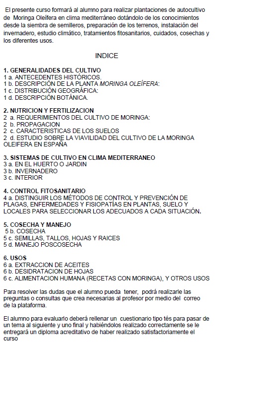 CURSOS ONLINE EN http://www.serviceconsulting.es CURSO DEL AUTOCULTIVO DE LA MORINGA OLEIFERA EN CLIMA MEDITERRANEO
